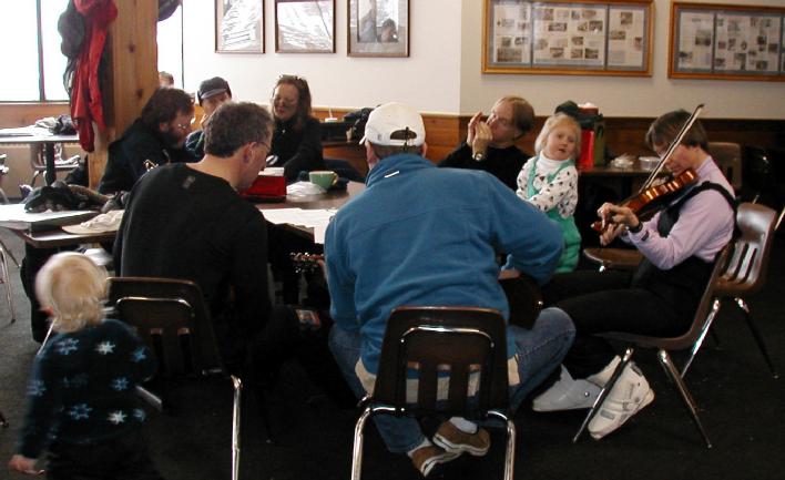Jack Thompson and visiting musicians jamming with Bill (note the ski boots - welcome to Alta)