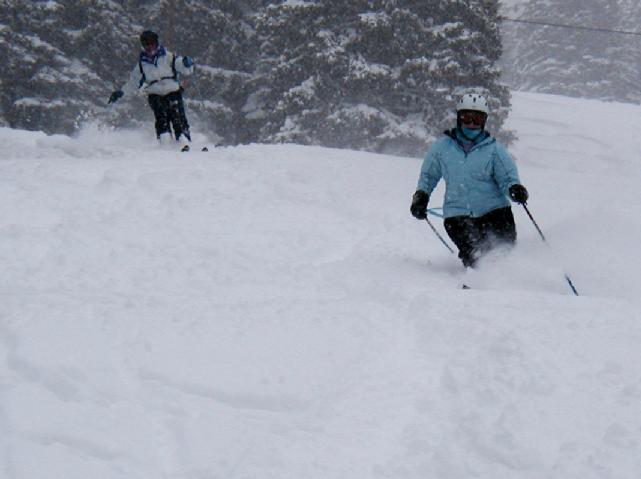 Skiing through the storm